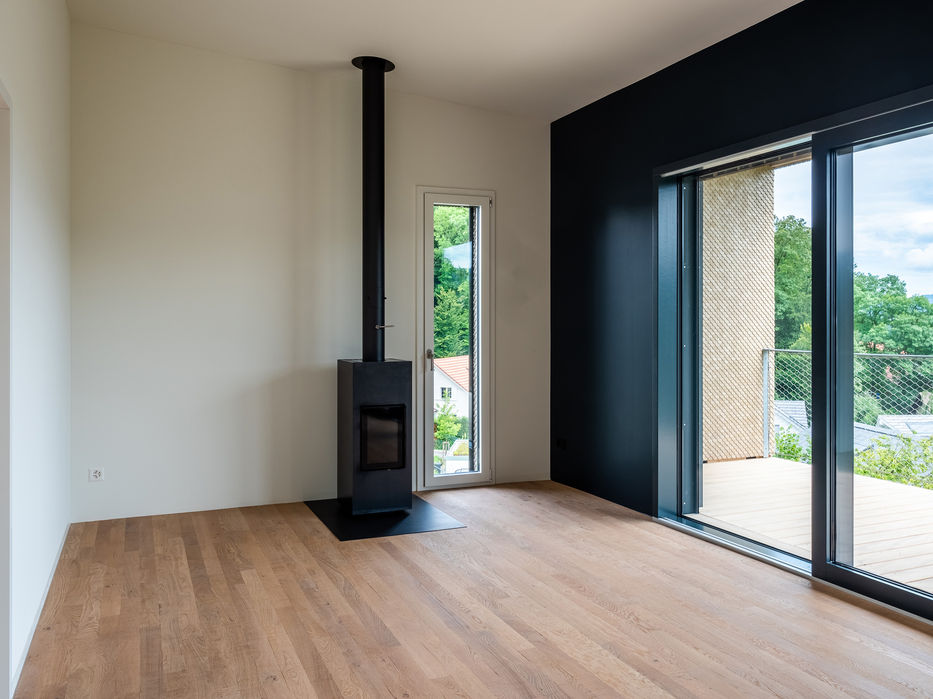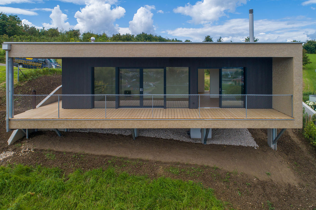 Der kompakte Baukörper fügt sich behutsam in die bestehende Topografie ein und schwebt über dem steilen Hang mit einer atemberaubenden Aussicht über die Region.